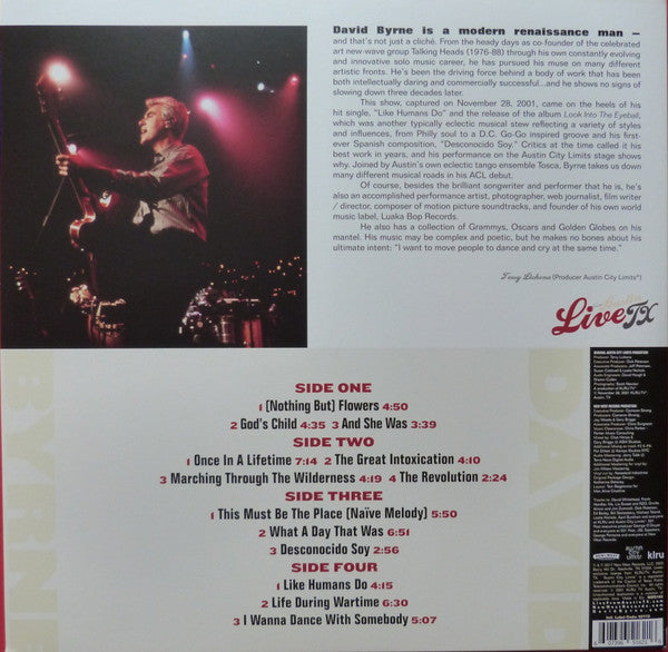 While the AUSTIN CITY LIMITS television program and its offshoot "Live from Austin" albums feature mostly rootsy artists, the occasional left-of-center surprise adds flavor. Case in point, this excellent 2007 release, which captures a sizzling David Byrne show that draws from both his solo career (a terrific rendition of "Desconocido Soy" from LOOK INTO THE EYEBALL) and his more recognizable hits with the Talking Heads ("Life During Wartime," "Once In A Lifetime"). He caps off the set with an infectious version of Whitney Houston's "I Wanna Dance with Somebody." Though possibly a tongue-in-cheek song selection, his plea for a dance partner who loves him sounds as vulnerable and sincere as anything he's recorded.