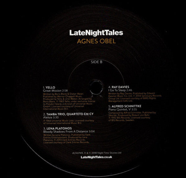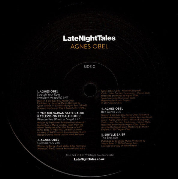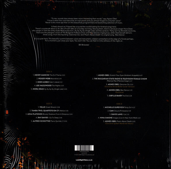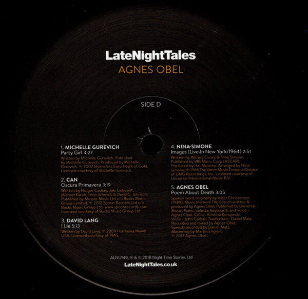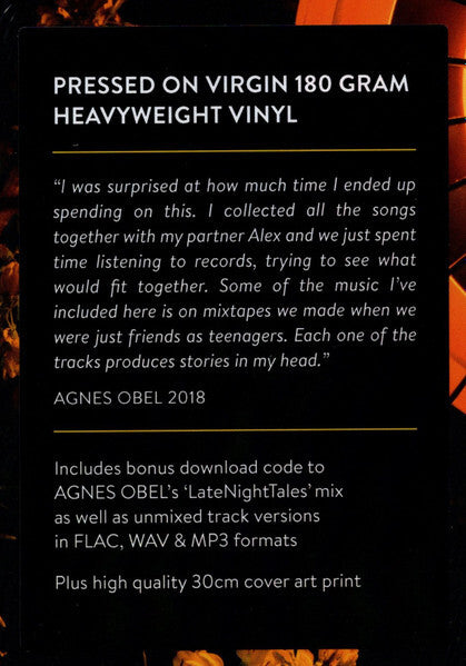 Experience the captivating sound of Agnes Obel with this two-LP set, "Late Night Tales: Agnes Obel". The vinyl records are made of high-quality 180-220 gram material, ensuring a heavy and durable addition to your music collection. The records feature the talented artist's easy listening style, with a mix of rock and other genres, making them perfect for any music lover.