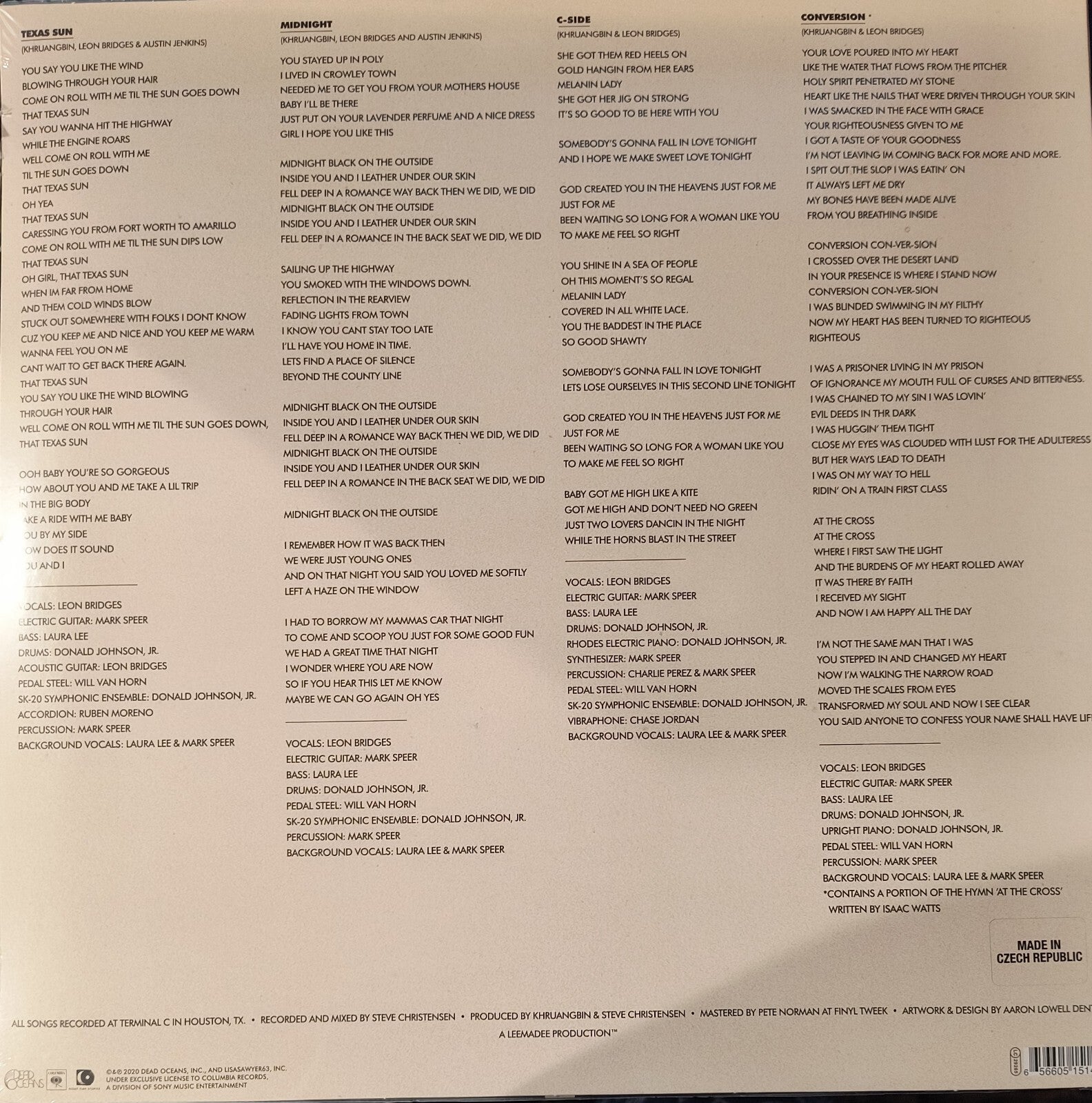Khruangbin & Leon Bridges' Texas Sun is a soul-filled journey blending smooth R&B vocals with Khruangbin's signature psychedelic grooves. This EP captures the essence of wide-open landscapes and warm, sunlit melodies. From the title track's heartfelt warmth to the hypnotic rhythms throughout, Texas Sun is a must-have vinyl for collectors seeking a serene yet evocative musical escape.