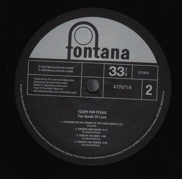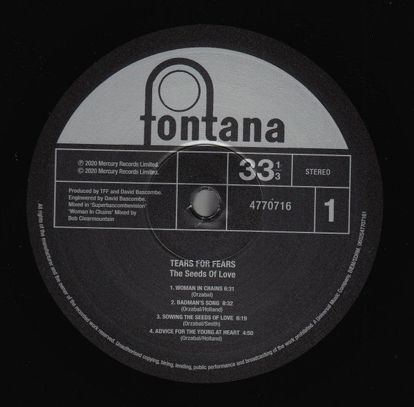 This is a rare opportunity to own a brand new vinyl LP by Tears for Fears, titled "The Seeds of Love." The record was released in 2020 under the Mry and Mercury record labels, and features a unique blend of psychedelic rock and pop rock genres.