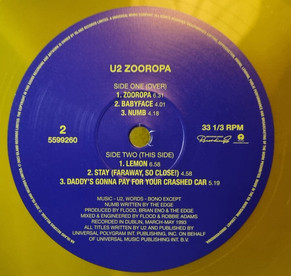U2 - Zooropa - Limited Edition - 30th Anniversary - 2LP Yellow Transparent Vinyl