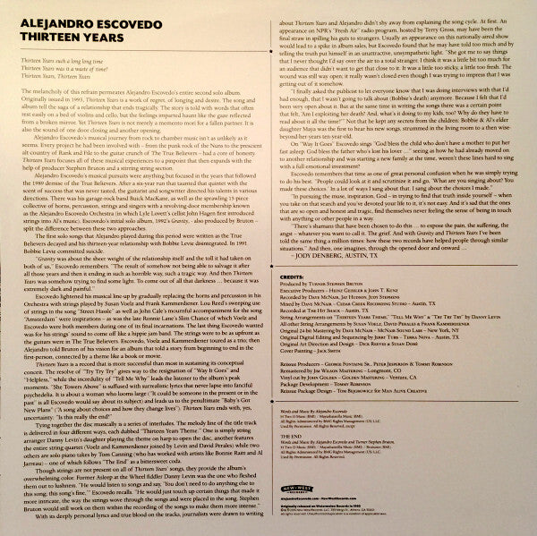 Experience the remarkable music of Alejandro Escovedo with his latest album Thirteen Years. This LP is a must-have for rock enthusiasts who enjoy folk rock and alternative rock genres. The vinyl record has been graded as Mint (M) and the sleeve has also been graded as Mint (M).