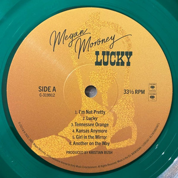 Dive into Megan Moroney's acclaimed debut with this eye-catching 2×LP deluxe vinyl pressing—translucent green discs, audio on three sides, and exclusive artwork etching on Side D.