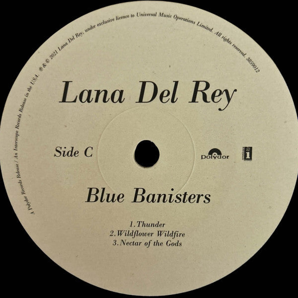 "Blue Banisters" is presented by Interscope Records and ISC, ensuring a high-quality auditory journey. Released in 2021, the album's format is a classic double LP, ideal for collectors and music enthusiasts alike. Dive into the resonant melodies and poetic lyrics that are signature to Lana Del Rey's artistic expression.
