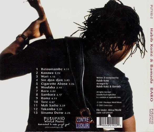 Baro is a captivating exploration of Malian musical traditions woven into contemporary, accessible sounds. Released in 2001 under the Putumayo World Music and Contre-Jour labels, this third album from Habib Koité & Bamada transforms familiar folk rhythms into a vibrant tapestry of Afro-Cuban inflections and traditional West African melodies. Notably, the album reinvents the hit "Cigarette Abana" into a fresh, Afro-Cuban version, bridging cultural boundaries while staying true to its roots. Its track list—featuring evocative titles like "Batoumambe," "Kanawa," and "Sin Djen Djen"—invites listeners on a rhythmic journey that is both soulful and engaging, appealing to world music enthusiasts and collectors alike.