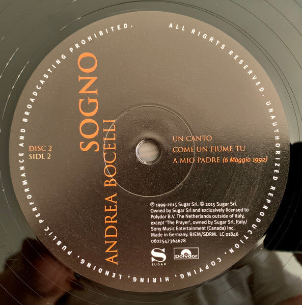 The remaster was produced and arranged by Mauro Malavasi , ensuring a refined sound quality. The vinyl is housed in a gatefold package with printed inner sleeves , maintaining the premium presentation of Bocelli's classic album.