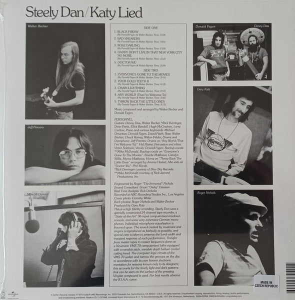At long last: the classic Steely Dan catalog is back on vinyl. Led by Walter Becker and Donald Fagen, Steely Dan released 7 albums from 1972-1980. The vinyl series continues with Katy Lied, the band's 1975's album featuring "Black Friday," "Bad Sneakers" and "Doctor Wu," and the addition of Michael McDonald on vocals. Available on 180g black vinyl.