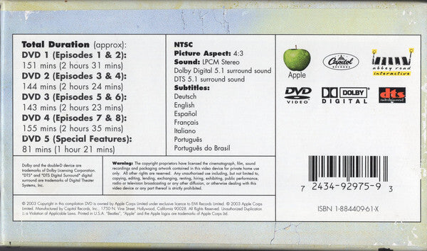 Experience the magic of Beatlemania with The Beatles Anthology DVD 5 Disc Set—a must-have collector's item that transports you straight into the heart of music history. This comprehensive five-disc collection features rare archival footage, intimate interviews, and unforgettable performances that chronicle the evolution of the Fab Four. Perfect for both die-hard fans and newcomers alike, every disc invites you to relive the extraordinary journey of one of the world's most influential bands. Dive into the moments that defined a generation and rediscover the timeless spirit of The Beatles.