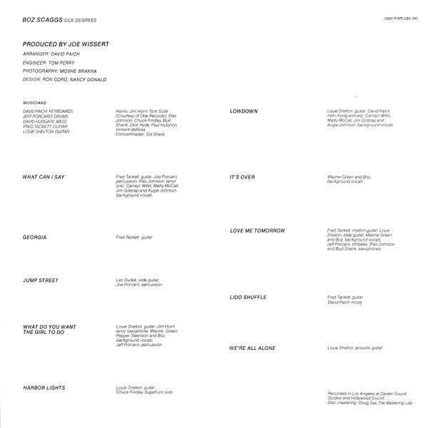 Recorded in L.A. at Davlen Sound Studios and Hollywood Sound. © 1976 CBS Inc. / ℗ CBS Inc. Record manufactured in Japan by CBS / Sony, Tokyo, Japan. Manufactured by CBS Records, CBS Inc.