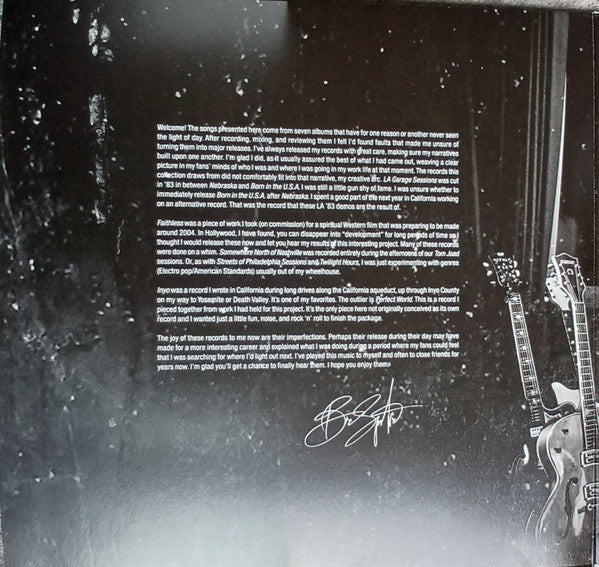 Lost And Found: Selections From The Lost Albums is a curated collection of 20 previously unreleased songs from Springsteen's Tracks II: The Lost Albums box set. These recordings illuminate key chapters in Springsteen's storied career, offering fans unprecedented insight into his creative process. "The Lost Albums were full records, some of them even to the point of being mixed and not released," Springsteen reveals. "I've played this music to myself and often close friends for years now. I'm glad you'll get a chance to finally hear them. I hope you enjoy them." Journey through Springsteen's sonic evolution, from the raw, lo-fi LA Garage Sessions '83 that bridges Nebraska and Born in the U.S.A., to the innovative drum loops and synthesizers of Streets of Philadelphia Sessions. This collection spans 35 prolific years of Springsteen's songwriting and home recording experiments. "The ability to record at home whenever I wanted allowed me to go into a wide variety of different musical directions," Springsteen explains. The compilation showcases his versatility across genres: unreleased film soundtrack work from Faithless, soulful country arrangements with pedal steel from Somewhere North of Nashville, richly textured border tales from Inyo, orchestral mid-century noir from Twilight Hours, and signature E Street rock from Perfect WorldLost And Found: Selections From The Lost Albums is available as a two-LP vinyl set or single CD and includes a personal introduction from Springsteen himself.
