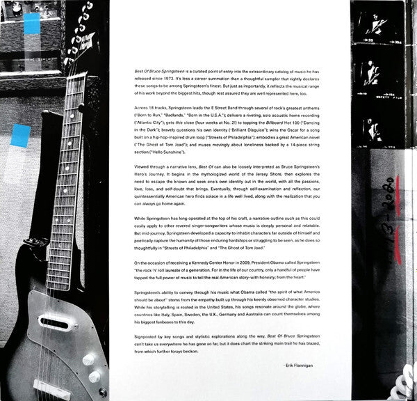 Atlantic Blue vinyl release On back cover: THIS COMPILATION ℗ & © 2024 COLUMBIA RECORDS. A DIVISION OF SONY MUSIC ENTERTAINMENT. DISTRIBUTED BY SONY MUSIC ENTERTAINMENT. SONY MUSIC ENTERTAINMENT INTERNATIONAL SERVICES GMBH, PO BOX 510, 33311 GÜTERSLOH, GERMANY. SONY MUSIC UK, 2 CANAL REACH, KINGS CROSS, LONDON, NIC 4DB, UNITED KINGDOM. COLUMBIA IS THE EXCLUSIVE TRADEMARK OF SONY MUSIC ENTERTAINMENT. ALL TRADEMARKS AND LOGOS ARE PROTECTED. ALL RIGHTS RESERVED. MADE IN THE EU. On sticker: A CARRER-SPANNING HITS COLLECTION Features 18 Classic Tracks Including Dancing In The Dark, Thunder Road + More 2LPs on ATLANTIC BLUE Vinyl The matrix runouts are etched up to RKS and stamped for the rest but the Roman numbers on the end are also etched.
