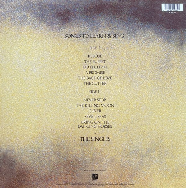 Dive into the post-punk brilliance of Echo & The Bunnymen with 'Songs To Learn & Sing'. This compilation album features their iconic hits like 'The Killing Moon' and 'Bring On The Dancing Horses'. Pressed on high-quality vinyl, it delivers an immersive listening experience that captures the band's signature sound and emotional depth. Perfect for collectors and fans, this album is a must-have that celebrates Echo & The Bunnymen's lasting influence and musical artistry.