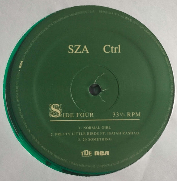 The product is a brand new, mint vinyl record of SZA's album "Ctrl" on green translucent vinyl. This double LP features a 12" size with a speed of 33 RPM and comes in a cardboard sleeve. Produced by RCA Records, this record is in mint condition and is perfect for fans of alternative R&B, contemporary R&B, and neo soul music from the 2010s. The colored vinyl adds a unique touch to this soul/R&B, R&B & soul, and funk genre record, making it a valuable addition to any vinyl collection.